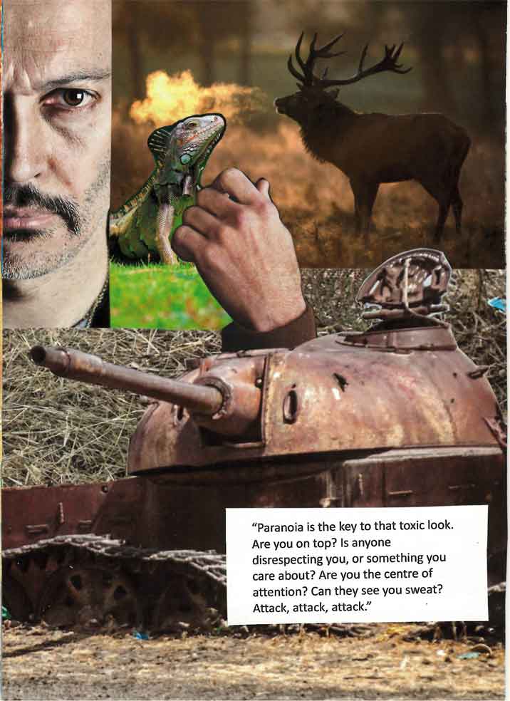 "Paranoia is the key to that toxic look. Are you on top? Is anyone disrespecting you, or something you care about? Are you the centre of attention? Can the see you sweat? Attack, attack, attack."